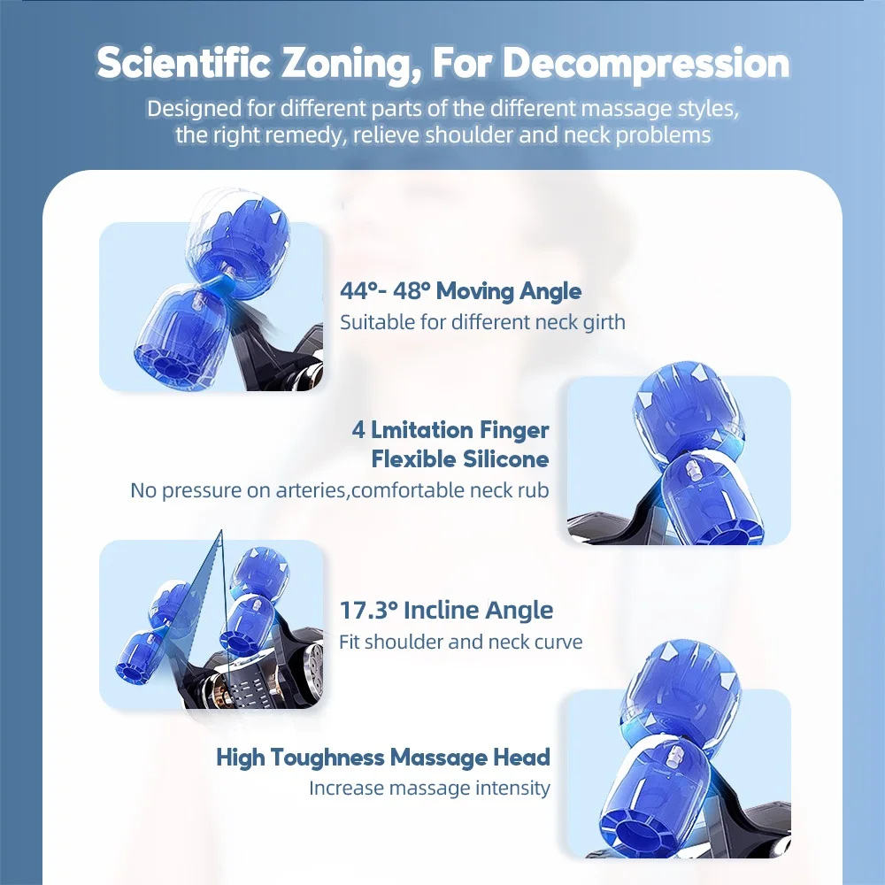 6.0 massage heads. The massage heads are distributed according to the entire neck point to achieve full cervical coverage and relax in place at one time.